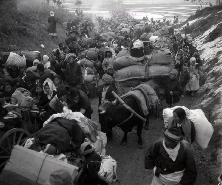 “As we crossed [the] Han River and drove southward, the road became completely filled with evacuating traffic and refugees, making it impossible for a vehicle to drive on."
