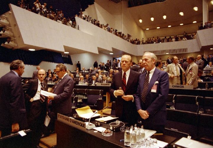 Images from sessions of the Helsinki Process that led to the signing of the Helsinki Accords capture what might have been the zenith of Cold War diplomacy. Many key figures of global diplomacy in that era can be found in these photographs, as the two-year Conference on Security and Cooperation in Europe (CSCE) ended with a summit in the Finlandia Hall in the summer of 1975.