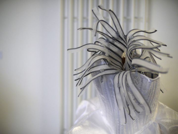 Sponsored by the London-based arts commissioning agency Artangel, the exhibition allowed visitors a behind-the-scenes view of the Victoria and Albert Museum’s monumental storage facility at Blythe House. Visitors took a private tour of 11 tableaux created by Judith Clark, a lecturer at the London College of Fashion who codirects the master’s program in fashion curation (the existence of which signals the increasing importance of fashion in museum collections), and Adam Phillips, a psychoanalyst and writer. Garments culled from storage, commissioned for the exhibition, or created by Clark herself were tucked into Blythe House’s vast galleries of ceramics, textiles, and drawings, as well as in its underground coal bunker and on the roof overlooking West London.