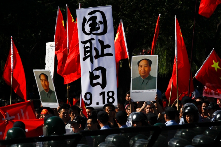 Cover image: Anti-Japan protesters hold portraits of the late Communist leader Mao Zedong, Chinese national flags, and a poster that reads: "September 18, National Humiliation Day" outside the Japanese Embassy in Beijing on September 18, 2012. (AP Photo / Alexander F. Yuan)