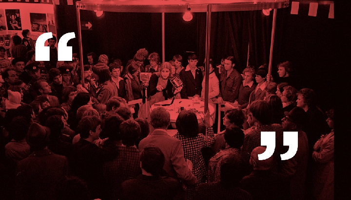 "In one case, I remember, it was probably at the end of my two hours, and at the end of that period, you were just exhausted mentally. You were like a fighter in the 12th round who could barely keep his arms up sometimes. And you were, at that point, looking for sympathetic people in the crowd to help you fend off the agitators, the komsomoltsy (Komsomol members) who would come in.