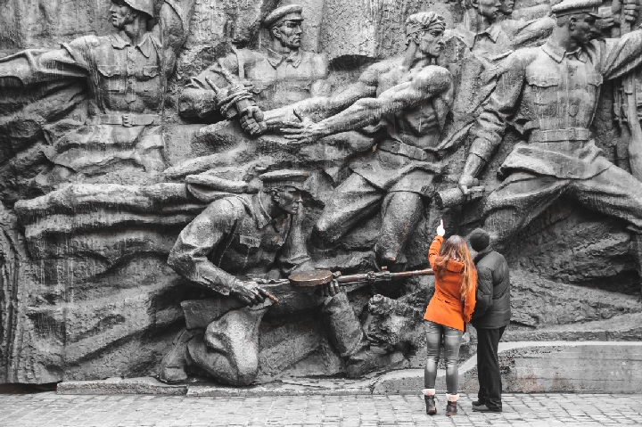 Above all, it is the story of 1939–45, told in such different ways across the country, that underlies the hatred and violence today. Western Ukraine has at least 23 monuments, numerous streets, and 6 museums dedicated to one of its wartime leaders, Stepan Bandera. As head of the Organization of Ukrainian Nationalists–Bandera (OUN-B), he collaborated with the Germans in the hope that they would allow an independent Ukraine. Lviv was his headquarters; the largest monument to him is located there. To this day, Bandera is a hero in western Ukraine. In Russia, eastern Ukraine, and Poland, he is reviled as a Nazi thug and mass murderer.