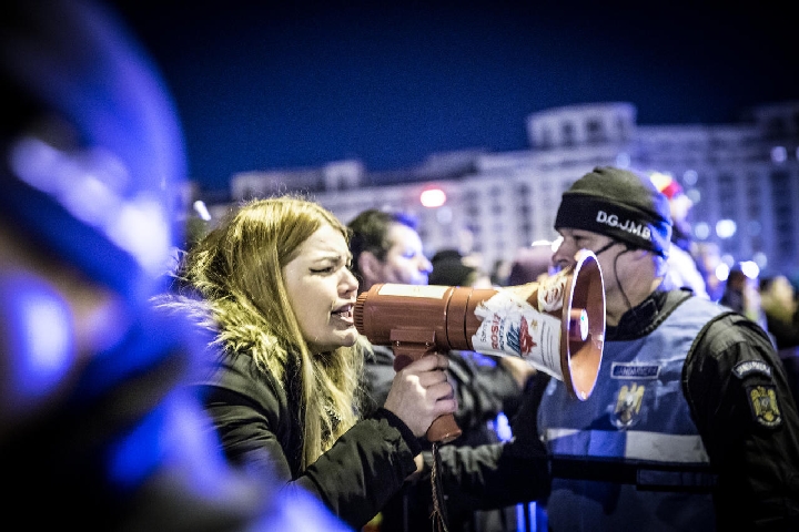 Two hours later, in subzero temperatures, 10,000 people show up to demonstrate against the government in the center of Bucharest. The numbers grow from there.